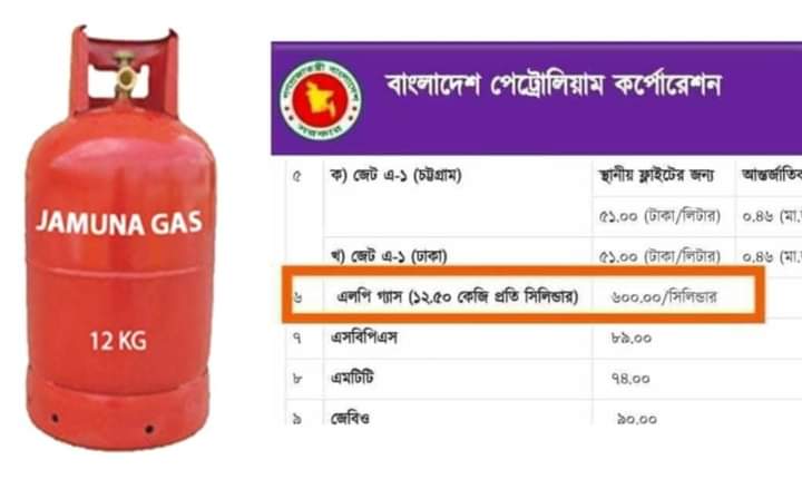 আজ থেকে ১২ কেজি গ্যাসের নির্ধারিত খুচরা মূল্য ৬০০ টাকা।দাম বেশি দেখলে ৯৯৯এ কল করুন বোতলের গ্যাসের দাম বৃদ্ধি পেয়েছে,